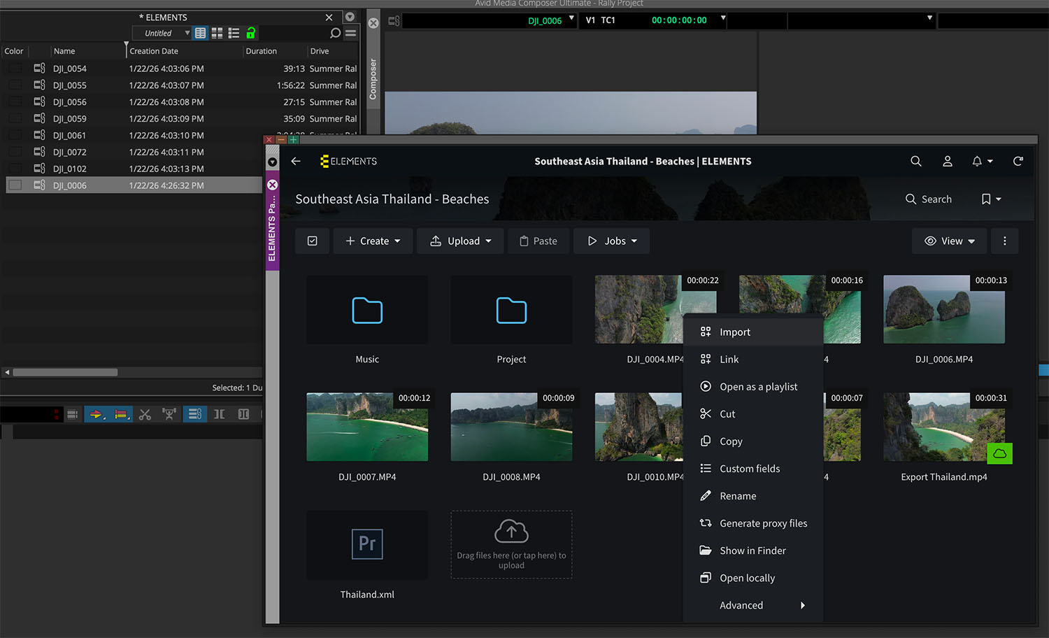 You can now also access the Media Library directly from within Avid Media Composer through a feature-rich panel integration. This panel allows users to easily preview all footage stored on your ELEMENTS system before importing or linking it with a single mouse click. In addition, the panel provides full access to Media Library collaboration features, including adding comments, assigning tasks, using the powerful search function to find the right footage, and triggering automation jobs created in the Automation Engine.